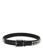 Dolce & Gabbana Black Calf Leather Studded Silver Buckle Belt