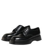 Dolce & Gabbana Black Calfskin Leather Men Derby Dress Shoes
