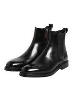 Dolce & Gabbana Black Chelsea Leather Mid Calf Boots Shoes