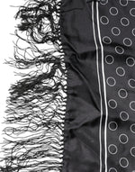 Dolce & Gabbana Black Circles Silk Fringes Shawl Wrap Scarf