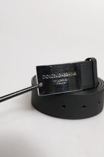 Dolce & Gabbana Black Classic Silver Metal Logo Buckle Belt