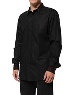 Dolce & Gabbana Black Cotton Embellished Collar Men’s Shirt