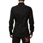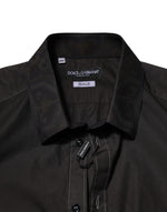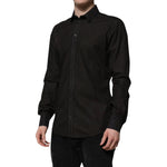 Dolce & Gabbana Black Cotton Jacquard GOLD Collar Dress Shirt