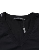 Dolce & Gabbana Black Cotton Plain V-Neck Men Shirt T-shirt