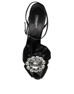 Dolce & Gabbana Black Crystal Ankle Strap Sandals Shoes