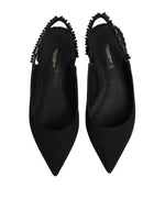 Dolce & Gabbana Black Crystal Charmeuse Slingback Shoes