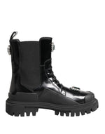 Dolce & Gabbana Black Crystal Embellished Combat Boots Shoes