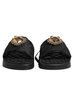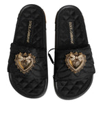 Dolce & Gabbana Black Devotion Matelassé Leather Slides Shoes