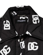 Gorgeous brand new, 100% Authentic Dolce & Gabbana jacket features an all-over white DG logo print on a black background, with a collar and button-front closure.