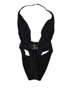Gorgeous brand new, 100% Authentic Dolce & Gabbana one-piece swimsuit with elastic waistband and dg logo buckle halter neck with plunging neckline and high-cut design