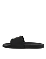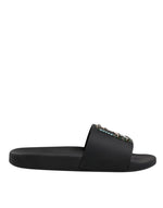 Dolce & Gabbana Black Divers Leather Flats Slides Sandals Beachwear Shoes