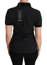 Dolce & Gabbana Black Dotted Collared Polo Shirt Cotton Top