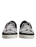 Dolce & Gabbana Black Embellished London Men Slip On Shoes