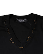 Dolce & Gabbana Black Embellished V-neck Pullover Sweater
