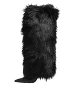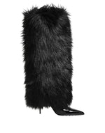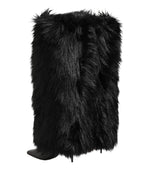 Dolce & Gabbana Black Faux Fur Pointed Knee High Stiletto Boots Shoes