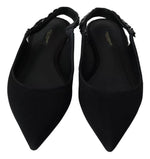 Dolce & Gabbana Black Flats Crystal Slingback Charmeuse Shoes
