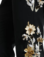 Dolce & Gabbana Black Floral Applique High Waist Tapered Pants