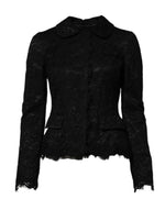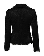 Dolce & Gabbana Black Floral Lace Cotton Collared Jacket