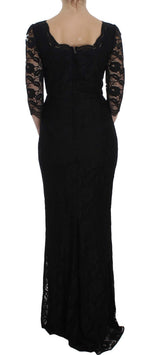 Dolce & Gabbana Black Floral Lace Long Ball Maxi Dress