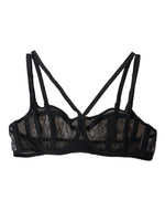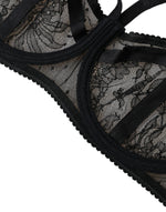Dolce & Gabbana Black Floral Lace Nylon Balconcino Bra Underwear