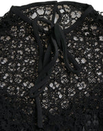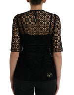 Dolce & Gabbana Black Floral Lace Short Sleeves Blouse Top