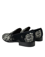 Dolce & Gabbana Black Floral Slippers Men Loafers Dress Shoes