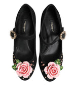 Dolce & Gabbana Black Flower Crystal Embellished Mary Jane Shoes