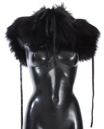 Dolce & Gabbana Black Fox Fur Shoulder Wrap Cover Collar Scarf