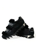 Dolce & Gabbana Black Fur Embellished Suede Sneakers Shoes