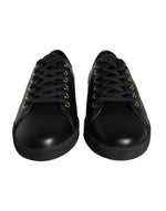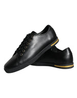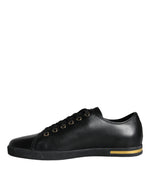 Dolce & Gabbana Black Gold Leather Classic Sneakers Shoes