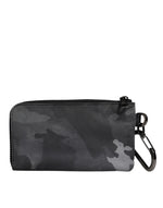 Dolce & Gabbana Black Gray Camouflage Logo Plaque Keyring Pouch Bag