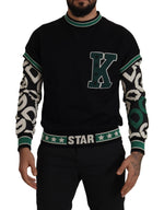 Dolce & Gabbana Black Green Cotton KING Star Crewneck Pullover Sweater