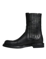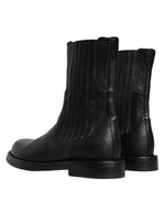 Dolce & Gabbana Black Horse Leather Mid Calf Boots Shoes