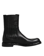 Dolce & Gabbana Black Horse Leather Mid Calf Boots Shoes