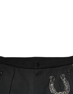 Dolce & Gabbana Black Horseshoe Embellished Wool Slim Fit Pants