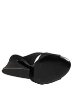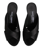 Gorgeous brand new, 100% Authentic DOLCE & GABBANA sandals slip-on style with an open toe and a high heel feature a black satin construction with crossover panels and a distinctive geometrical heel.