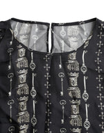 Dolce & Gabbana Black Key Castle Print Silk Blouse T-shirt