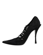 Dolce & Gabbana Black Lace Crystals Mary Jane Pumps Shoes