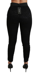 Dolce & Gabbana Black Lace Skinny High Waist Cotton Pants