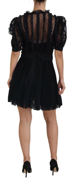Dolce & Gabbana Black Lace Trim A-line Mini Nylon Dress