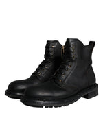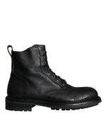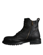 Dolce & Gabbana Black Lace Up Mid Calf Boots Men Shoes