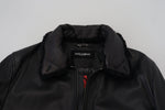 Dolce & Gabbana Black Lamb Leather Collared Men Coat Jacket