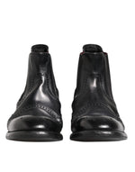 Dolce & Gabbana Black Leather Ankle Boots Slip On Shoes