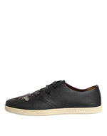 Dolce & Gabbana Black Leather Bee Crown Low Top Sneakers Shoes
