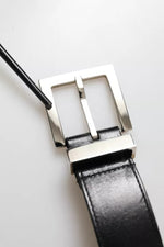 Dolce & Gabbana Black Leather Beige Strap Silver Metal Buckle Belt