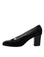 Dolce & Gabbana Black Leather Block Heels Pumps Shoes