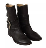 Dolce & Gabbana Black Leather Buckle Mid Calf Boots Shoes