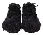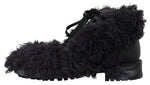 Dolce & Gabbana Black Leather Combat Shearling Boots Shoes