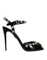 Dolce & Gabbana Black Leather Crystal Ankle Strap Sandals Shoes