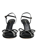 Dolce & Gabbana Black Leather Crystal Bow Heels Sandals Shoes